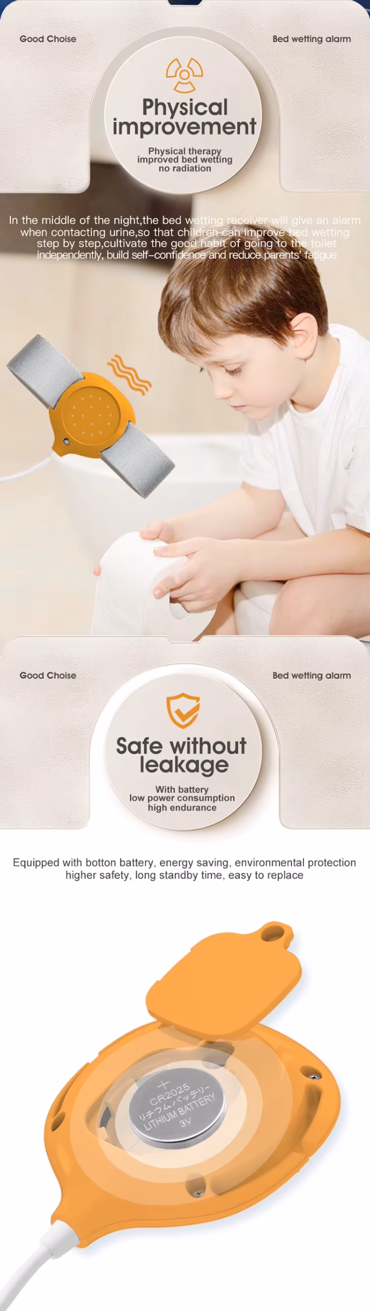 • The high sensitivity of the alarms ensures that they quickly detect any moisture, triggering an immediate alert to wake the user up, provide effective assistance in bedwetting training. Help to develop the habit of waking up to use the restroom.