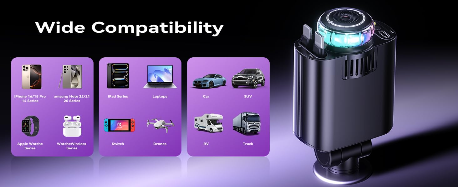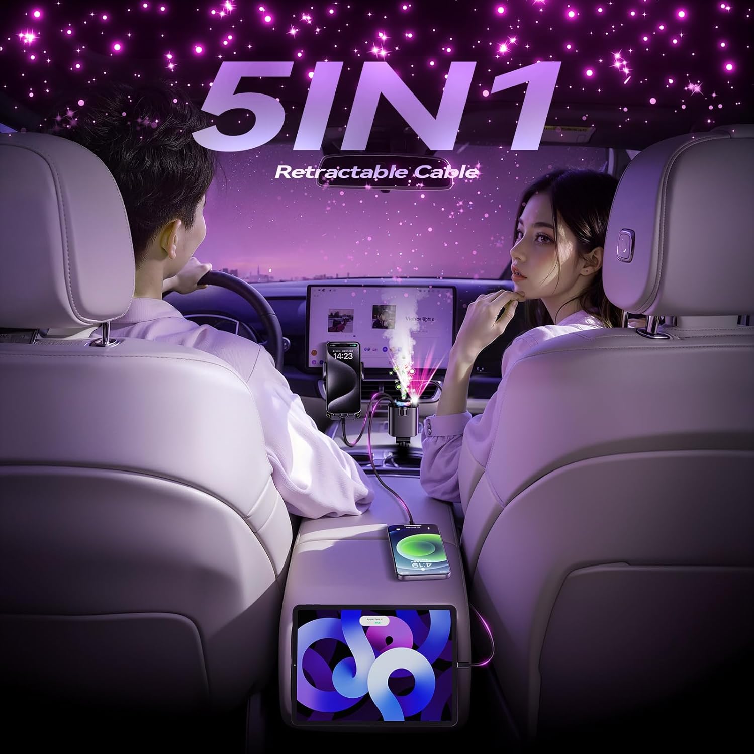 I’m really impressed with this Retractable Car Charger! The 4-in-1 design is incredibly convenient, especially with the retractable cables—it keeps my car clutter-free and makes charging multiple devices effortless. The build quality feels solid, and the charger works well with all my devices, from iPhones to AirPods and even my iPad.