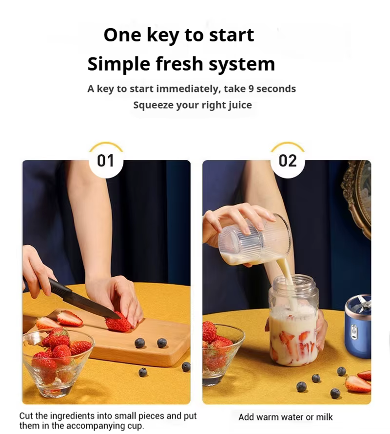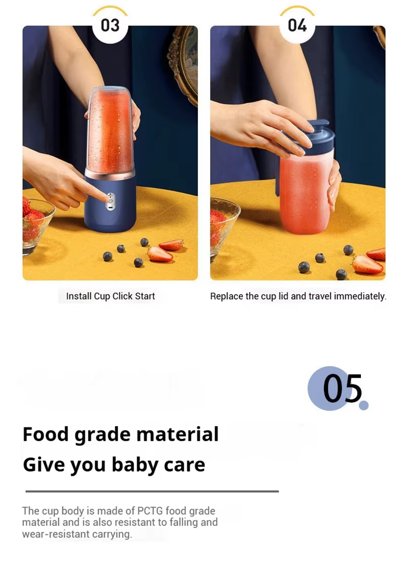 It's portable and rechargeable, allowing you to enjoy fresh juice anytime, anywhere.